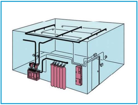 ⑴ 전역방출방식 : 방호구역 전체에 소화약제를 방출하는 방식