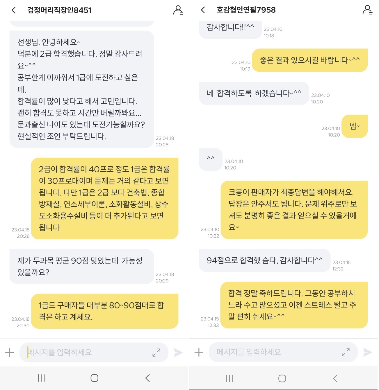 ✔ 참고로 아래는 일부 구매자와 나눈 대화내용 입니다. 교재 요약정리 부분을 같이보면 이해하는데 도움이 되지만 바쁘신 분들은 기출문제만 반복해서 봐줘도(문제마다 해설이 되어 있으므로) 충분히 합격할 수 있습니다.