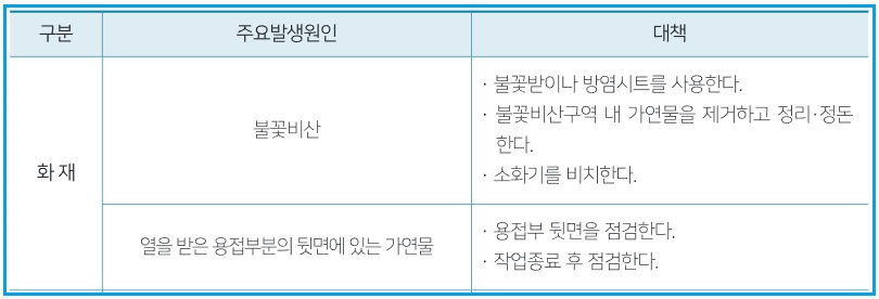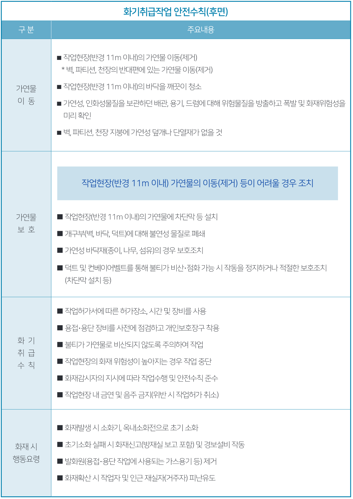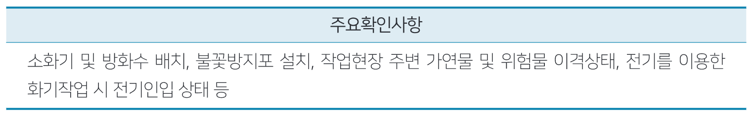 다. 화기작업에 따른 인근 가연성물질에 대한 방호조치 및 소화기구 비치