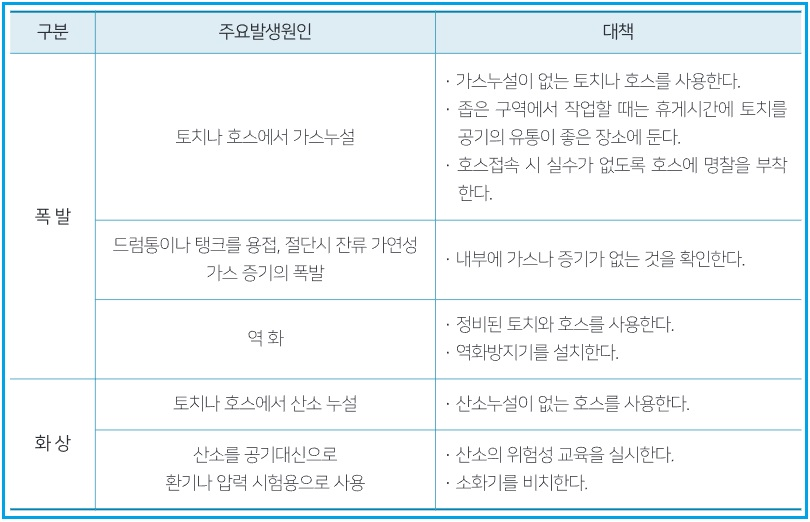 ⚬ 용접·용단 작업자의 주요 재해발생원인 및 대책