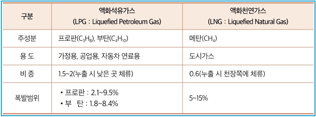 2. 다음 표는 LPG와 LNG에 대한 내용이다.