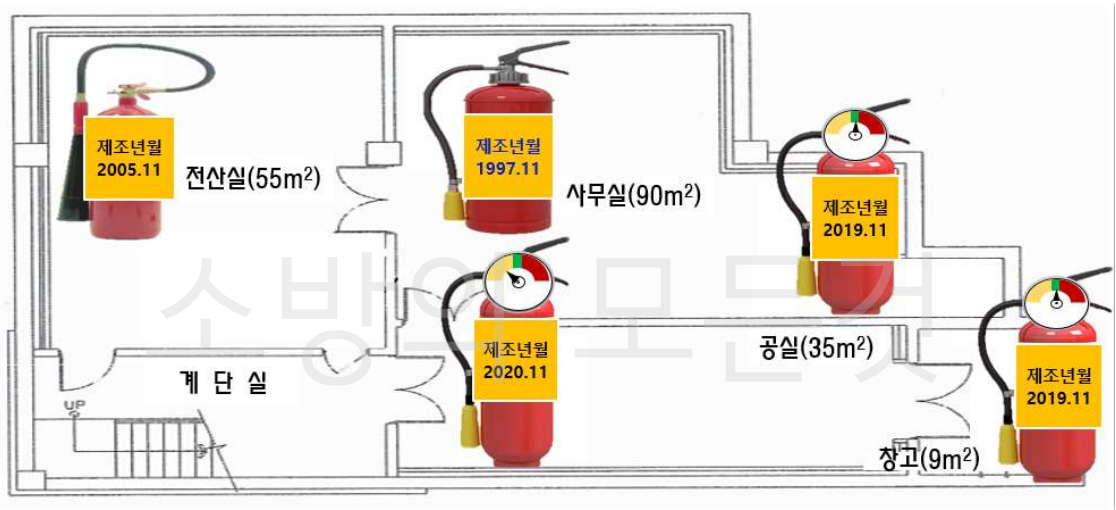① 전산실 : 소화기의 내용연수가 초과하여 소화기를 교체해야 한다.