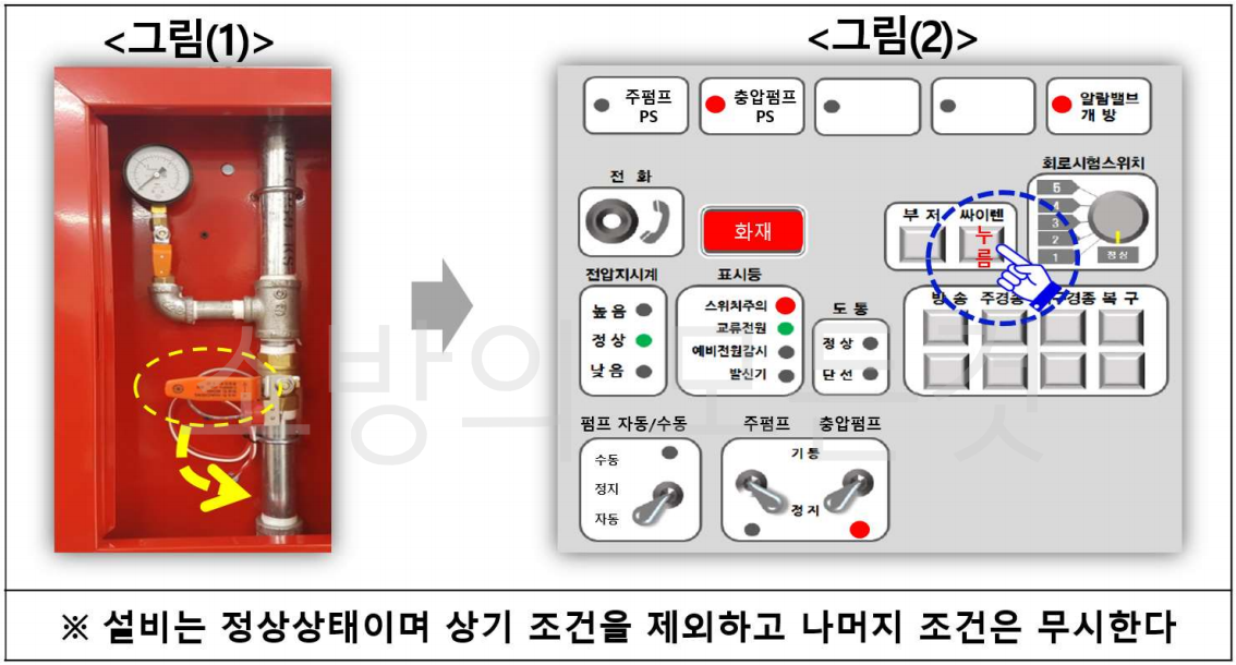 (사이렌) 작동 확인 및 펌프의 기동을 확인하면 된다.