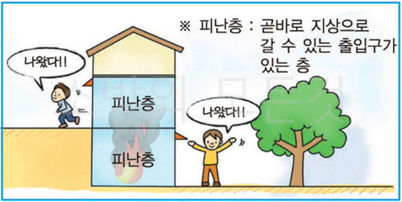 ⚬ 피난층 : 곧바로 지상으로 갈 수 있는 출입구가 있는 층