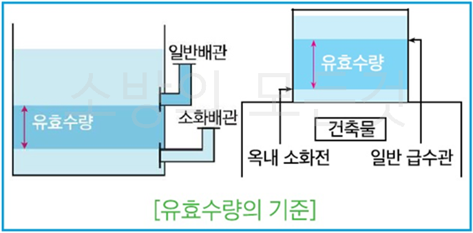 ⚬ 유효수량 : 타 소화설비와 수원이 겸용인 경우 각각의 소화설비 유효수량을 가산한 양 이상으로 한다.