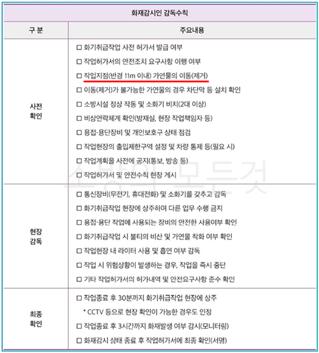 | 화재감시인 입회 및 감독 | 화재감시인 입회 화기취급감독 |